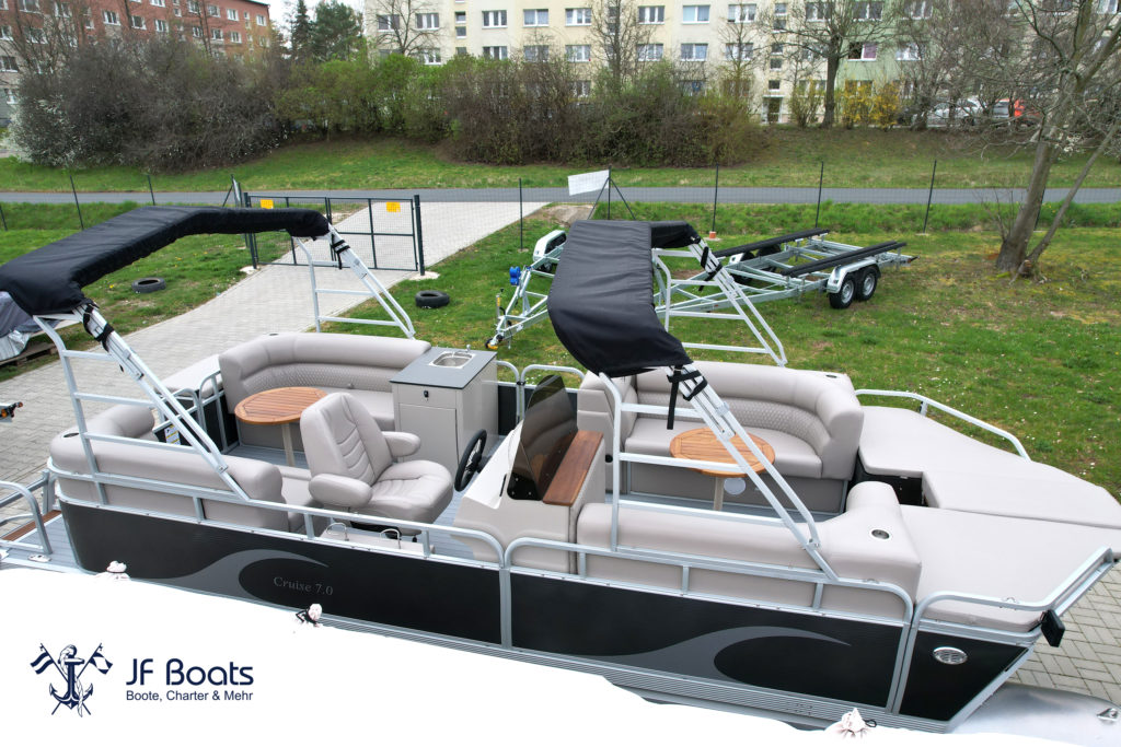 Es handelt sich hierbei um ein neues Shark Pontonboot, mit TOP Ausstattung, vielen Extras und Platz für bis zu 9 Personen, welches auf einer Messe ausgestellt wurde und nun als Ausstellungsstück verkauft wird.